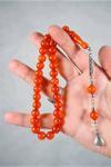Turuncu Renk Küre Tane Toz Kehribar Tesbih, Tesbihimiz orta boy ölçülerde yerli üretim olarak kendi atölyemizde el işçiliği ile üretilmiştir.