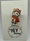 Turuncu şapkası ve atkısıyla sıcacık bir karakter taşıyan bu el yapımı seramik kedi, kış ruhunu tatlı bir dokunuşla yansıtır.