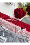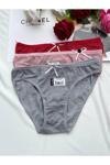 Tutku 3'Lü Puantiyeli Kurdeleli Kadın Külot Seti - Kırmızı/Pembe/Gri