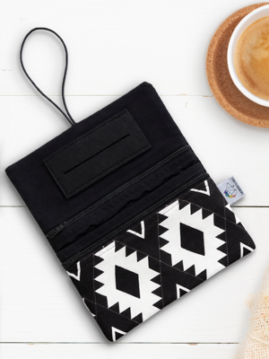 Siyah Kanvas Bohem Tütün Çantası Yılbaşı Hediyesi Tütün Kesesi 16x10cm