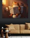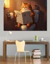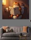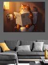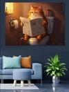 Tuvalette Gazete Okuyan Kedi Dekoratif Kanvas - Mdf Ahşap Tablo