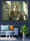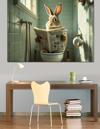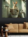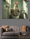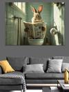 Tuvalette Gazete Okuyan Tavşan Dekoratif Kanvas - Mdf Ahşap Tablo