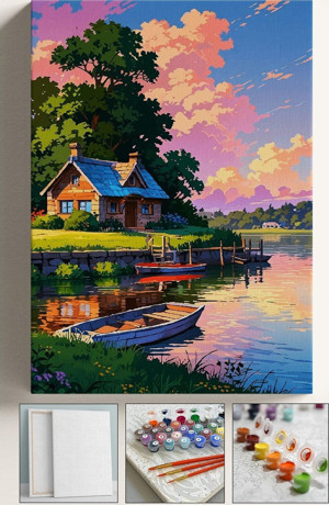 Corvo Sayılarla Boyama Çerçeveli Hobi Seti Numaralı Tuval Fırça Boya Kasnaklı 40X50 Cm Göl Kenarı - Image 1