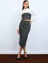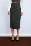 Yüksek bel, arka fermuarlı, arka yırtmaç detaylı, iç astarlı, tüvit kalem etek.