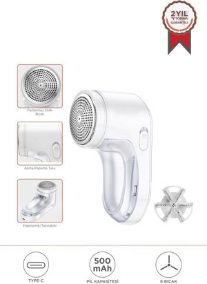 VeryFit Şarjlı (Type C) Tüy Tiftik Toplama Toplayıcı Temizleme Makinesi 2 Adet Yedek Bıçak Hediyeli