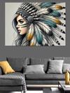 Tablomega Tüylü Savaşçı Kızılderili Kadın Dekoratif Kanvas - Mdf Ahşap Tablo