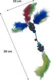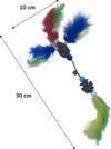 Bu kedi oyuncağı renkli tüyler tahta bir top ve bir zilden yapılmıştır. Bu renkli ve parlak tüyler kediler için görsel simüle edici ve ses çıkartan zilli top ilgilerini çekmek için harikadır.