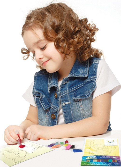 ♥ Nasıl Yapılır: Bir kürdan yardımı ile önce koyu renklerden başlamak üzere sarı kağıdı kaldırıp yapışkanlı yüzeyi açığa çıkartınız. Eliniz ile renkli tuzu döküp yayınız ve daha sonra diğer renkleri yapınız. Fazlalıkları silkeleyiniz. Bittikten sonra ürünle beraber verilen poşetin içine yerleştiriniz. Sanat eseriniz hazırdır.