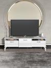 Arnetti Sona 180cm Dolaplı Dekoratif TV Ünitesi Beyaz Altın Bant
