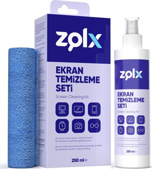 Zolx Ekran Temizleme Seti 250 ml (Mikrofiber Bez)