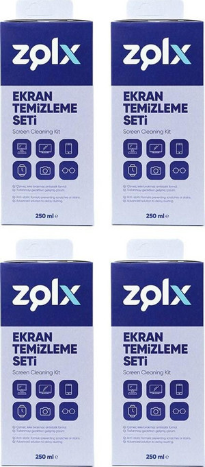 Zolx Ekran Temizleme Seti 250 ml - 4 Adet (Mikrofiber Bez)