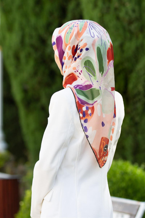 Violla Twill Yumuşak Dokulu Çiçekli Batik Desenli Bordo - Bej Renkli 90x90 Eşarp (İpek İçermez) Dikim Şekli : El Dikişi