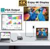 HDMI ve VGA çıkışları, aynı anda iki harici ekrana Genişletebilir ve Aynalayabilir ve HDTV, ikincil Monitörler veya Projektörlerde kristal netliğinde 4K UHD veya full HD 1080p videoların keyfini çıkarabilir.
