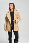 Basen altı hafif bol kesim, ayarlanabilir kemerli, cepli, rüzgarlık detaylı trençkot.
