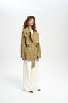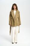 Basen altı hafif bol kesim, ayarlanabilir kemerli, cepli, rüzgarlık detaylı trençkot.