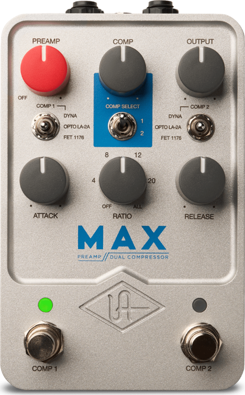 Ödüllü UAFX çift motorlu sinyal işleme teknolojisi ve aslından farksız ses doğruluğuna yönelik dayanılmaz bir istek doğrultusunda tasarlanan Max Preamp & Dual Compressor, üç efsanevi limiterin renkli sesini ve ikonik bir tüp ön amplifikatörünü doğrudan ayaklarınızın altına getiriyor.