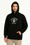 Erkek Sırt Baskılı Oversize Üç İplik Kapüşonlu Hoodie Sweatshirt - Siyah - Image 1