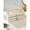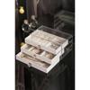Üç Katlı Takı Organizeri, üç katlı çekmeceli tasarımı ile farklı türdeki takıların (yüzük, küpe, kolye, bileklik vb.) ayrı ayrı saklanmasına olanak tanır. Kadife kaplı iç bölmeler, takıların çizilmesini önler ve şık bir sunum sağlar. Saydam akrilik dış kapak, tozlanmayı engellerken içeriğin kolayca görünmesini sağlar. Kristal görünümlü çekmece kulpları ise dekoratif bir detay olarak tasarıma zarafet katar. Çok gözlü iç yapısı, küçük aksesuarların karışmadan düzenli bir şekilde durmasını sağlar. Bu düzenleyici kutular, hem evde takı organizasyonu sağlamak hem de makyaj masası veya komodin üzerinde dekoratif bir görünüm oluşturmak için idealdir.