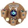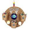 Üç saksılı hasır ipten ürünümüz 24 santimetre çapındadır. Welcome yazılı kapı süsümüz nazar boncukları ve deniz kabuklarıyla süslenmiştir.