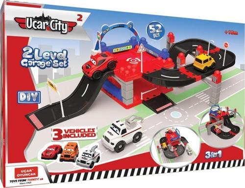 Uçar Oyuncak City 3 Araba 52 Parça 3 In 1 Araç Yarış Garaj Seti