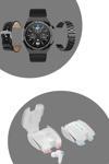 AKILLI SAATTitreşim bildirimleri sayesinde gelen çağrıları, mesajları ve diğer uyarıları hissederek kaçırma derdi olmadan anında yanıt verebilirsiniz.Uyku takibi özelliği ile uyku düzeninizi analiz ederek daha sağlıklı bir yaşam için bilinçli adımlar atabilirsiniz.Kalp atış hızı sensörü, gün boyu nabzınızı izleyerek antrenmanlarınızı ve genel sağlığınızı daha iyi takip etmenize yardımcı olur.Spor modları, koşu, yürüyüş, bisiklet ve daha birçok aktivite için özel takiple en iyi performansı elde etmenizi sağlar.Kablosuz bağlantı desteği, telefonunuzla hızlı ve kolay eşleşme imkanı sunarak günlük kullanımınızı daha pratik hale getirir.Uzun pil ömrü, günlerce şarj etmeden kullanım sağlayarak kesintisiz bir deneyim yaşatır.KULAKLIKYeni nesil Bluetooth kulaklık, dokunmatik kontrol özelliği sayesinde müzikleriniz arasında kolayca geçiş yapmanıza, çağrılarınızı rahatlıkla cevaplamanıza ve ses seviyesini zahmetsizce ayarlamanıza olanak tanır. Kullanıcı dostu bu sistem, konforlu ve pratik bir deneyim sunarak tam kontrolü parmaklarınızın ucuna getirir.2 yıl ithalatçı garantisi ile gelen bu kulaklık, uzun ömürlü ve güvenilir bir kullanım sağlar. Herhangi bir sorun yaşamanız durumunda garanti kapsamı sayesinde endişelenmeden teknik destek alabilirsiniz.Dahili mikrofon özelliği, net ve anlaşılır konuşmalar yapmanızı sağlayarak eller serbest kullanımın keyfini çıkarmanıza yardımcı olur. Özellikle yoğun telefon görüşmeleri yapan kullanıcılar için mükemmel bir çözüm sunar.Aktif Gürültü Önleme (ANC) teknolojisi, dış dünyadan gelen rahatsız edici sesleri filtreleyerek yalnızca müziğinize odaklanmanızı sağlar. Daha iyi bir dinleme deneyimi sunarak, ister yolda ister ofiste olun, konsantrasyonunuzu maksimum seviyeye çıkarır.Suya ve tere karşı dayanıklılık özelliği, kulaklığın spor yaparken, açık havada veya yağmurlu günlerde bile güvenle kullanılmasına olanak tanır. Aktif yaşam tarzınıza mükemmel şekilde uyum sağlayarak her an yanınızda olur.Gelişmiş Bluetooth bağlantısı, kesintisiz ve yüksek kaliteli ses deneyimi vaat eder. Stabil ve güçlü bağlantı teknolojisi sayesinde kopma ya da ses kaybı yaşamadan müziğin ve iletişimin tadını çıkarabilirsiniz.
