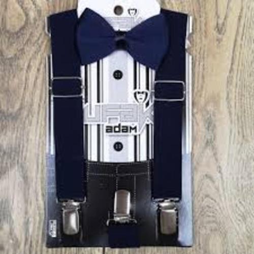 Çocukların şık görünümüne katkı sağlayan lacivert papyon askısı, her kıyafetle uyum sağlayacak şekilde tasarlanmıştır.