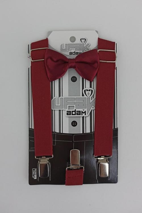 Bebeğinizin şıklığını tamamlayacak bordo papyon askı seti, miniklerinize zarif bir dokunuş katıyor.