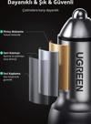 Ugreen Alüminyum 42.5W PD QC 3.0 Çift Çıkışlı Hızlı Araç Şarj Cihazı, ile aracınızda telefon ve tablet gibi cihazlarınızı sıradan çakmaklık şarjlarına kıyasla 4 kat daha hızlı şarj edebilirsiniz. Cihaz üzerinde bulunan çift çıkış sayesinde aynı anda iki cihazınızı hızlı bir şekilde şarj edebilirsiniz. Cihaz üzerinde 1 adet USB – A ve 1 adet USB -C (Type-C) çıkış yer almaktadır. Ugreen firmasının tüm enerji ihtiyacı duyan cihazlarında kullanmış olduğu güvenlik protokolü bu cihazdada yer almaktadır. Akıllı güvenlik sistemi ile cihazlarınızı kısa devreye, aşırı ısınmaya ve aşırı akımlara karşı korumaktadır. Bu sayede cihazlarınızı güvenle ve yüksek performans ile şarj edersiniz. Toplam çıkış gücü 42.5W olması cihazı piyasadaki birçok araç şarjının önüne geçirmektedir. Type-C çıkışında 5V – 3A çıkış sağlayarak kısa sürelerde cihazların tam dolumu gerçekleşmektedir. Alüminyum malzemeden imal edilmiş olması sebebiyle düşürmelere ve darbelere karşı daha dayanıklı hale getirilmiştir.
