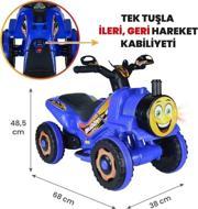 Girişi Ac 220V 50/60Hz. Full Şarjda 40-60 Dk. Kullanım. Çıkışı 6V 1000Ma. Ani Kalkışlarda Devrilmemem Özelliği Süspansiyonlu Ön Tekerlekler. Yüksek Manevra Kabiliyeti. Motor Çalışma Sesi, Korna Sesi Ve 3 Ayrı Müzik Özelliği Gaz Pedalı Kırmızı Ve Mavi Led Işık Özelliği.