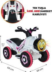 Uj Toys Müzikli ve Led Işıklı Akülü. ATV 6V Buddy Beyaz Prenses Özellikleri İlk Arabam Modu. 2'si Bir Arada Kullanım (Akülü, Aküsüz Kullanım) 4 Saatte Şarj Edilmektedir. Saatte 4,5 Km/h Hıza Ulaşmaktadır. 35 Kg. Taşıma Kapasitesi Bulunmaktadır. Park Etme, İleri, Geri Gitme Özelliği Vardır. 3+ Yaş İçindir. Güç.