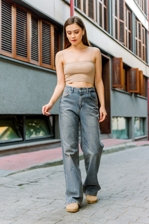 - Kombin Önerisi: Crop bluzlar, ince askılı bluzlar veya oversize kazaklarla kombinleyip, sneaker veya topuklu ayakkabı ile tamamlayarak hem rahat hem de şık bir görünüm yakalayabilirsiniz.