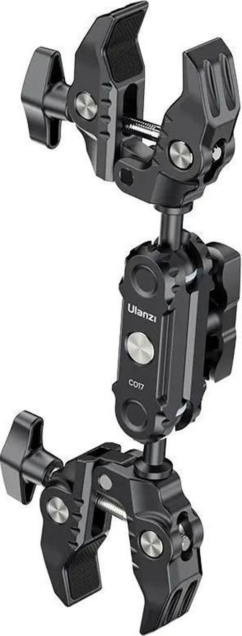 Ulanzi CO17 Çift Yönlü Sihirli Kollu Süper Kelepçe. Bu çok yönlü Süper Kelepçe motosikletlere, bisikletlere, tripodlara, masalara ve daha fazlasına kolayca takılır. Kaymayı önleyici tasarımı, 0,47 ila 2,28 inç genişliğindeki yüzeylerde güvenli bir tutuş sağlar. Çift bilyalı başlık, esnek 360° ayarlamalar sunarak çok yönlü atış açıları sağlar. 3,5 kg'lık yük kapasitesiyle seçeneklerinizi genişletmek için top başlıklarını değiştirebilirsiniz. Hafif ancak dayanıklı alüminyum alaşımdan yapılmıştır, seyahat ve günlük kullanım için mükemmeldir.Süper esneklik için Süper Kelepçe.
