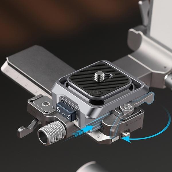 Ürün, tek plakayla birden fazla stabilizatörü yönetebilme mantığıyla tasarlanmıştır. Bu, sahada sürekli ekipman değiştiren içerik üreticileri için büyük bir avantaj sağlar. Çekim sırasında kamerayı bir anda gimbal üzerinden çıkarmanız veya slider, tripod, monopod gibi farklı bir ekipmana geçirmeniz gerektiğinde UKA hızlı bağlantı mekanizması beklemeyi ortadan kaldırır. Plakanın özel kaydırmalı yapısı, kamera gövdesinin saniyeler içinde yerine oturmasını sağlar. Sadece plakayı yerine sürmeniz ve güvenlik kilidini etkinleştirmeniz yeterlidir; kamera kendini otomatik olarak kilitleyerek maksimum güvenliği sunar. Bu sistem hem hız kazandırır hem de çekim akışının bölünmesini engeller.