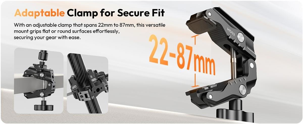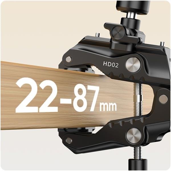 22–87 mm Kelepçe AçıklığıMasa, tripod, boru ve farklı yüzeylere güçlü ve güvenli şekilde sabitlenebilir. |