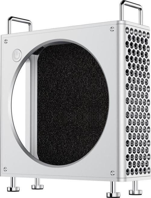 QT01 kasası, Apple'ın ikonik Mac Pro tasarımından esinlenerek üretilmiştir. Ön paneldeki 3D delikli desen, sadece estetik bir görünüm sunmakla kalmaz, aynı zamanda hava akışını optimize ederek cihazın soğutulmasına katkıda bulunur. Kasanın üst kısmında bulunan iki cilalı alüminyum taşıma kolu, hem taşıma kolaylığı sağlar hem de modern bir görünüm kazandırır. Kasa, dayanıklı alüminyum alaşımdan üretilmiş olup, sağlamlık ve hafifliği bir arada sunar. İç kısmında yer alan yumuşak köpük malzeme, Mac Mini'nizin çizilmelere karşı korunmasına yardımcı olur.