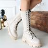 Kadın Bağcıklı Platform Topuklu Çizme Diz Altı Kalın Topuk Bot - Image 1