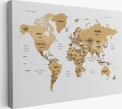 Ülke ve Başkentli İngilizce Dünya Haritası, Harita Dekoratif Kanvas Tablo, Duvar Dekoru 1549