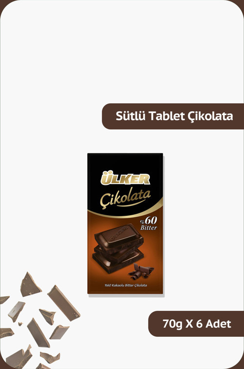 %60 Bitter Tablet Çikolata - 70 gram - 6 Adet