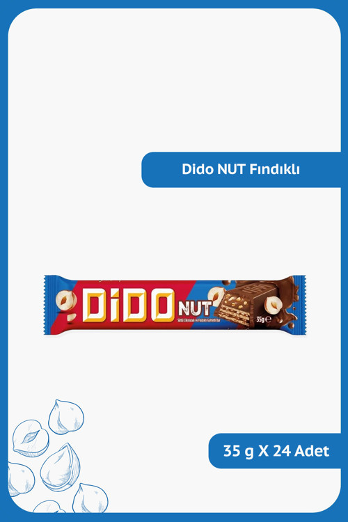 DİDO NUT - Sütlü Çikolatalı ve Fındıklı Gofretli Bar - 35 gram - 24 Adet