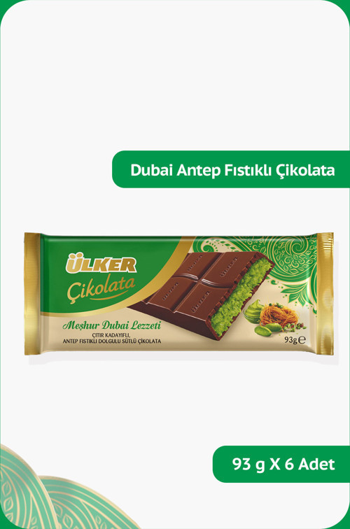 - - Ülker Çikolata Kadayıflı Dubai Lezzeti, zengin çikolata tadıyla damaklarınızı şenlendirirken, kadayıfların yumuşak dokusu ile unutulmaz bir tat deneyimi sunar. - 93gx6x6 boyutlarındaki bu paket, aile boyu keyifli atıştırmalık anları için idealdir