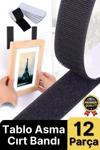 Ultra Güçlü Çivisiz Çerçeve Asma Çözümü: Kendinden Yapışkanlı Siyah Cırt Bant 12'li Set,