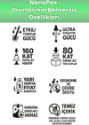 Çamaşırlarda Kullanım (Temizlik Etkisi): Çamaşır beyazlatıcı ve leke çıkarıcı olarak kullanmak isterseniz 5 lt. suya 15 ml. NanoPax ekleyin, iyice karıştırın, 45 dakika beklettikten sonra durulayın ve deterjan ile normal yıkamanıza devam edin. Daha yoğun kirler için 30 ml. NanoPax ekleyin. Gece boyunca bekletecekseniz, kullanım miktarını yarıya indirin.