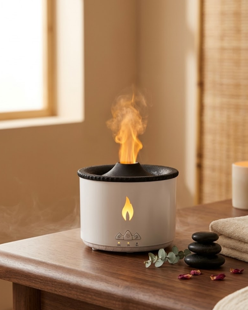 Cihazın en dikkat çekici özelliklerinden biri alev ve volkan efekti sunan özel tasarımıdır. Alev modunda sis ve LED ışık birleşerek gerçekçi bir alev görüntüsü oluşturur. Volkanik denizanası modunda ise sis hareketleri volkan patlamasına benzer bir görüntü oluşturur. Bu özellik ürünü sadece bir nemlendirici değil aynı zamanda dekoratif bir ambiyans cihazı haline getirir.