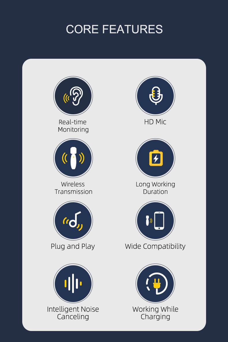 Gerçek zamanlı izleme, 2.4G kablosuz iletim, tak ve çalıştır, akıllı gürültü azaltma, şarj ederken kullanın