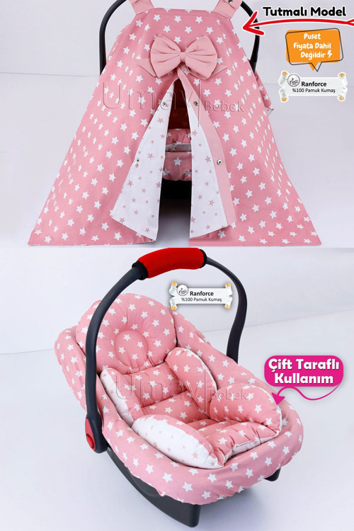 Umay Bebek 3 Parça - Puset Örtüsü, Bel Destekli Puset Minderi, Puset Çarşafı, %100 Pamuk- Tutmalı
