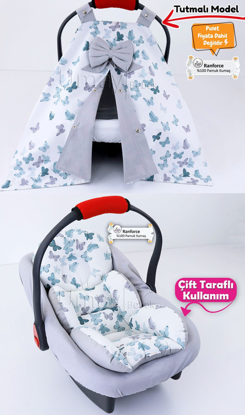 Umay Bebek 3 Parça - Puset Örtüsü, Bel Destekli Puset Minderi, Puset Çarşafı, %100 Pamuk- Tutmalı