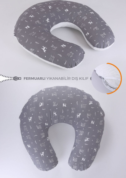 Meleni Baby Bebek Emzirme Yastığı, Destek Minderi, Fermuarlı Yıkanabilir Hamile Yastığı