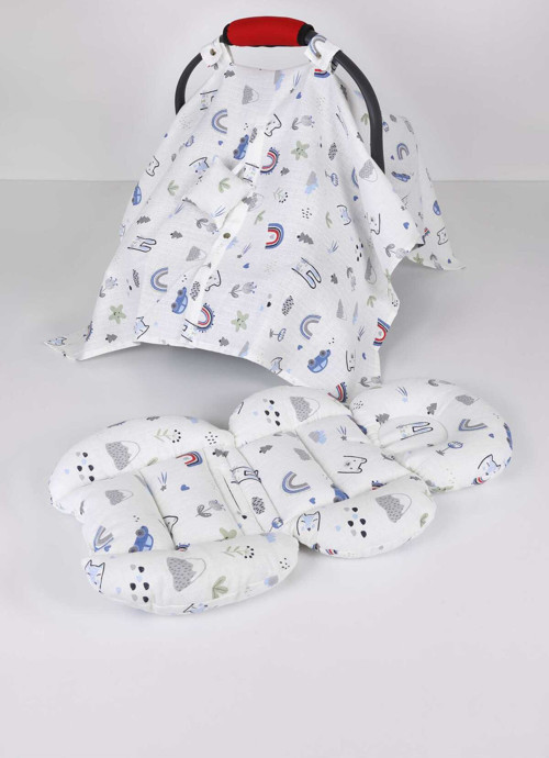 Umay Bebek 3 Parça - Puset Örtüsü, Bel Destekli Puset Minderi, Puset Çarşafı, %100 Pamuk - Panço - Image 1