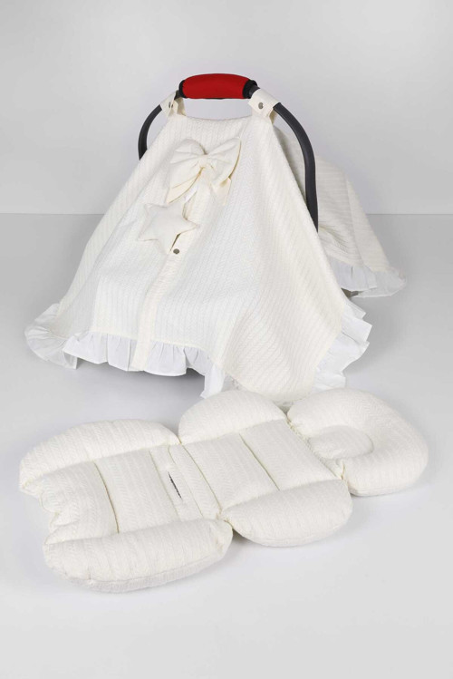 Umay Bebek Puset Örtüsü, Puset Minderi, 2 Parça, Örgü Pike, %100 Pamuk Kumaş, Seyahat Arkadaşı - Bel Destekli