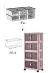 4 Katlı Portatif Katlanabilir Dolap Depolama Dolabı Pembe 50 Lt Saklama ve 6'Lı Ayakkabılık BEZLİ
